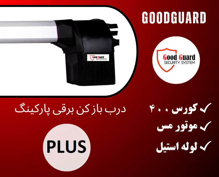 جک پارکینگ گودگارد مدل پلاس دارای دو عدد بازو با قابلیت جابجایی هر بازو 2.5 متر و قدرت 400 کیلو برای هر لنگه میباشد ، جک پارکینگ گودگارد محصولی ایرانی با قابلیت های فنی بسیار مناسب برای محیط های مسکونی میباشد از نظر شکل ظاهری این جک درب پارکینگ بسیار شبیه مدل 412 فک ایتالیا و بسیاری از جک های پارکینگی دیگر میباشد که از موفق ترین پلت فورم جک استفاده شده است. موتور های این جک 220 ولت بسیار قدرتمند است که قابلیت جابجایی 400 کیلوگرم درب برای هر لنگه و 2.5 متر برای هر لنگه را دارد.
