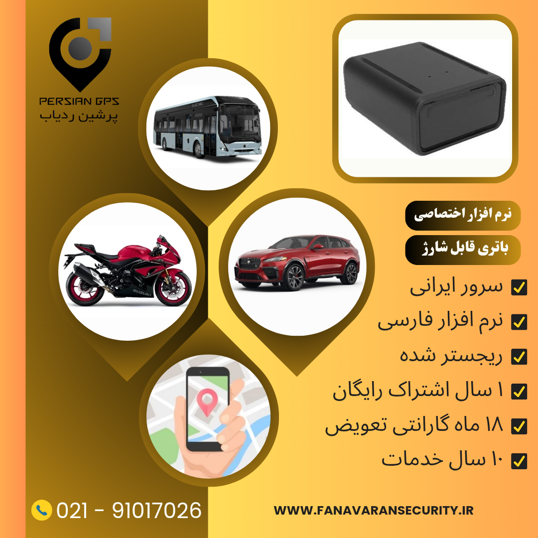 ردیاب خودرو پرشین ردیاب مدل P-30D با سرور ایرانی و نرم افزار اختصاصی 30 روز شارژ بدون نیاز به سیمکشی